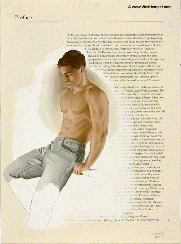 Wes Hempel, 2007; PREFACE (Van Dyck Series); oil and graphite on bookpage; 12.75" x 9.5"