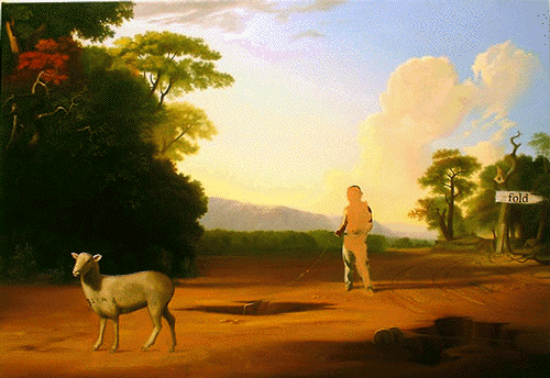 © Wes Hempel & Jack Balas, 2004; BLINDFOLD (#91); oil and enamel/ canvas; 22" x 32"